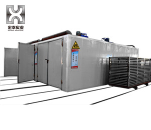 宏幸石英石固化著色爐克服以往隧道爐和箱式爐的缺點不足,提供一種兼有以往隧道爐和箱式爐優點的作業方式,可以以爐為單位處理烘烤物料,能準確掌握爐膛溫度和烘烤時間。同時又可以快捷、輕松地裝爐或轉移烘烤物件,生產效率相比以往隧道爐提高40%.